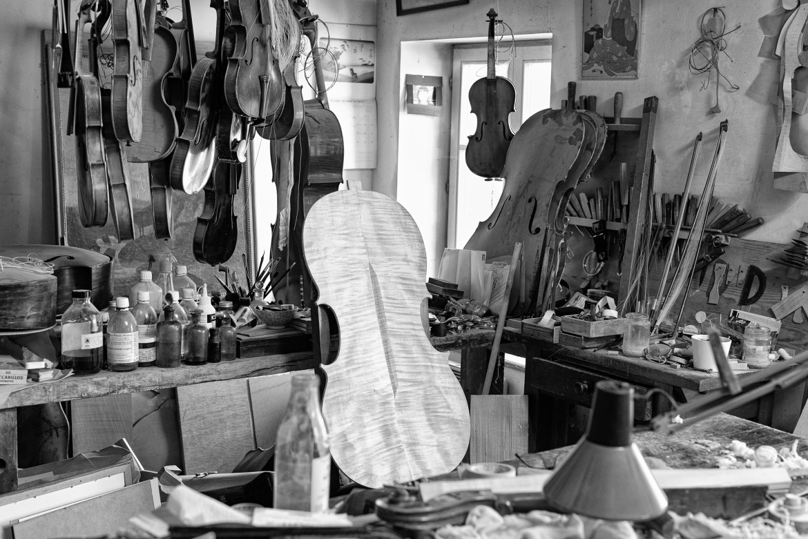 Werkstatt-Kuriositätenkabinett des Geigenbauers Alain Meyer in Lorry-les-Metz