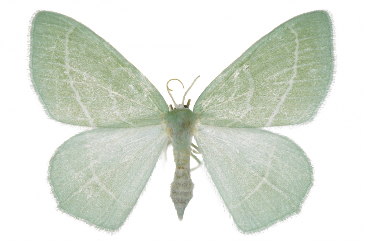 Waldreben-Grünspanner, Familie der Spanner, Fundort Saarfels, Flügelspannweite 33 mm // Élement de la série :